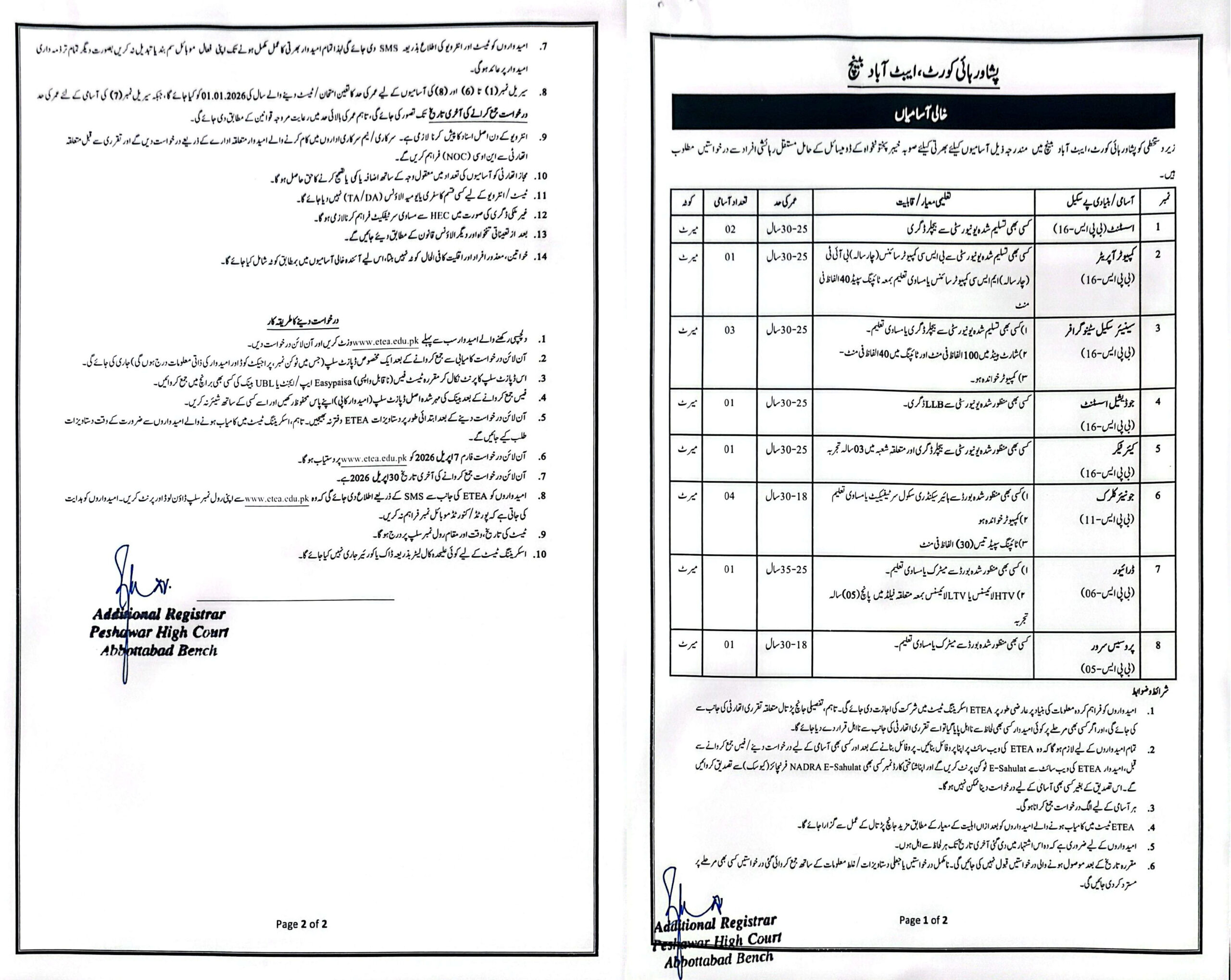 Apply for Peshawar High Court Abbottabad Bench Jobs 2026 via ETEA. Vacancies for Assistant, Computer Operator, Junior Clerk, and more. Last date: April 30, 2026.
